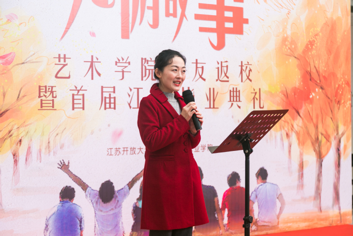 12月28日下午,艺术学院校友返校暨首届江开毕业典礼在应天校区图书馆楼四楼阳光中庭举行。来自98、99、00届医学美容专业及首届开放教育人物形象设计专业毕业学员欢聚一堂,共忆往昔时光,共话母校情深。典礼由艺术学院形象艺术专业负责人夏雪敏主持。