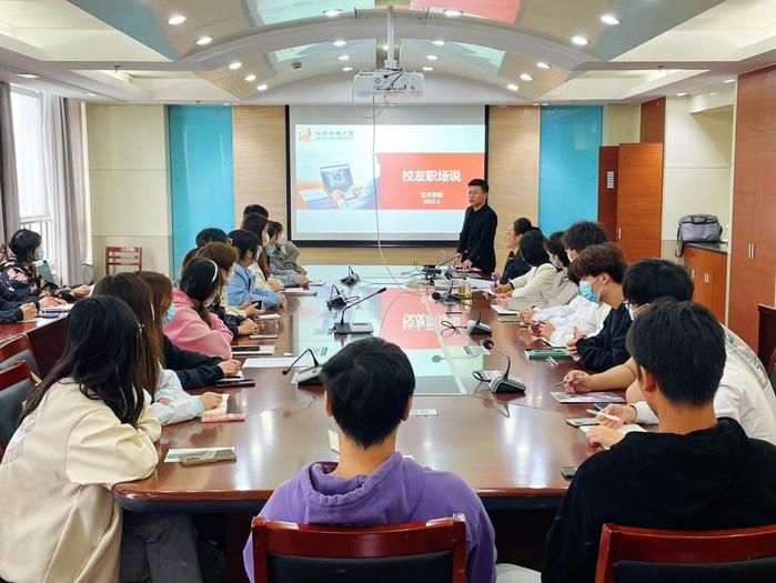 为充分发挥校友资源优势,引导学生做好职业规划,4月29日,艺术学院在应天校区综合楼八楼会议室举办“校友职场说”专题分享会,邀请2021届人物形象设计专业校友王鹏分享大学经历与职场感悟。会议由辅导员时海霞主持,党总支部副书记张洁与2020级、2021级学生代表参加了此次会议。