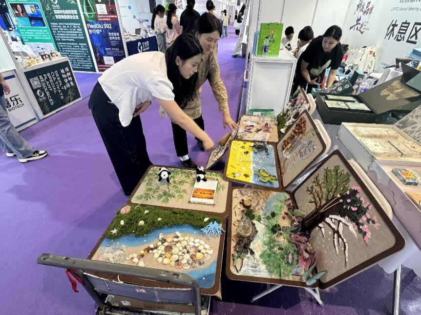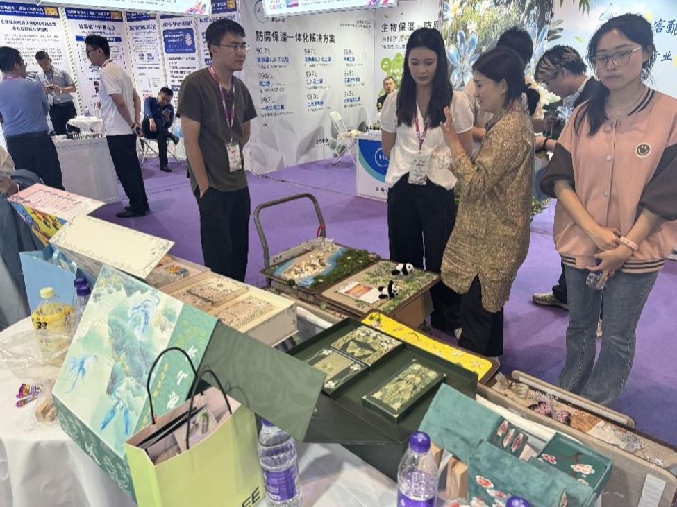 我院师生紧扣《化妆品品牌策划与创意综合实训》课程,以“课程实践”为核心,集中展示20余件学生课程作品,通过作品交流与行业资源对接,打通课堂与产业的实践通道。展会现场,师生与欧莱雅、华熙生物等企业代表深度研讨,将企业实际需求即时转化为教学案例,实现实践反哺教学。