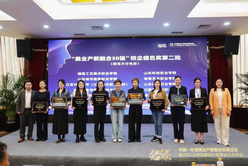 11月2日,由教育部职业院校艺术设计类专业教学指导委员会人物形象设计专业委员会主办,浙江纺织服装职业技术学院、广西纺织工业学校、广西艺术学院国际教育交流中心联合承办的“中国—东盟美业产教融合发展论坛暨2025人物形象设计专委会工作年会”在南宁圆满落幕。我校艺术学院形象艺术系夏雪敏副教授代表学院参会,并凭借在美业产教融合领域的卓越实践与突出成果,成功斩获“美业产教融合50强”校企提名奖,充分彰显了我校在美业职业教育领域的深厚积淀与行业认可度。