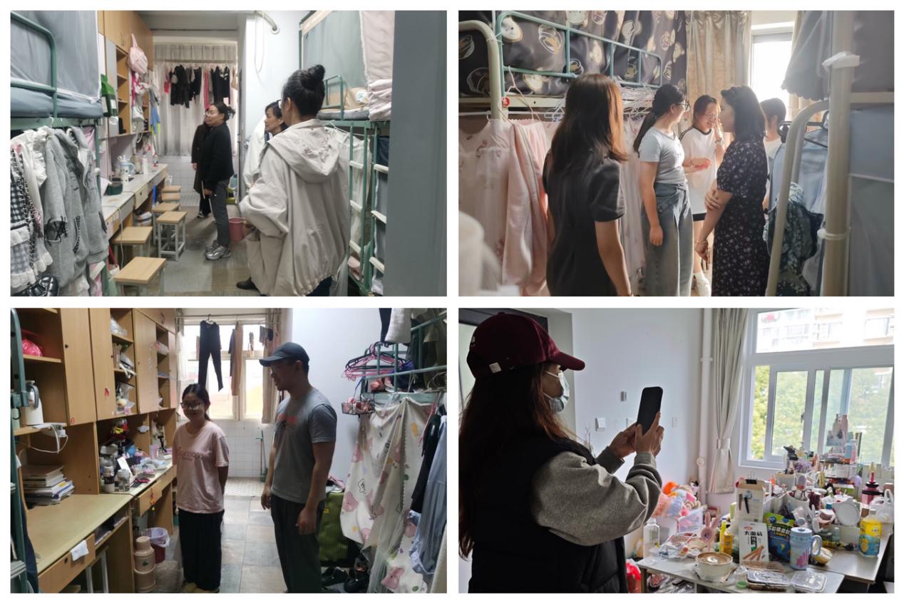 学院积极响应学校号召,通过党政联席会专题传达文明宿舍创建文件要求,制定《院领导、专任教师对接宿舍方案》,明确工作目标、标准及时间节点,确保全院学生宿舍“一舍一对接人”无盲区。全体教师以高度责任心投身创建,落实 “主动参与、主动检查、主动解决”。院领导每月至少2次深入宿舍,与学生面对面交流了解实际问题;辅导员每周至少2次下宿舍,细致检查卫生清理、用电安全等情况,对问题当场记录、限期整改;班主任每周至少1次走访本班宿舍,关注学生人际关系与安全意识,化解潜在矛盾;专任教师每月至少1次课后入舍,既查创建情况,又结合专业为学生答疑,让宿舍成为“第二课堂”。