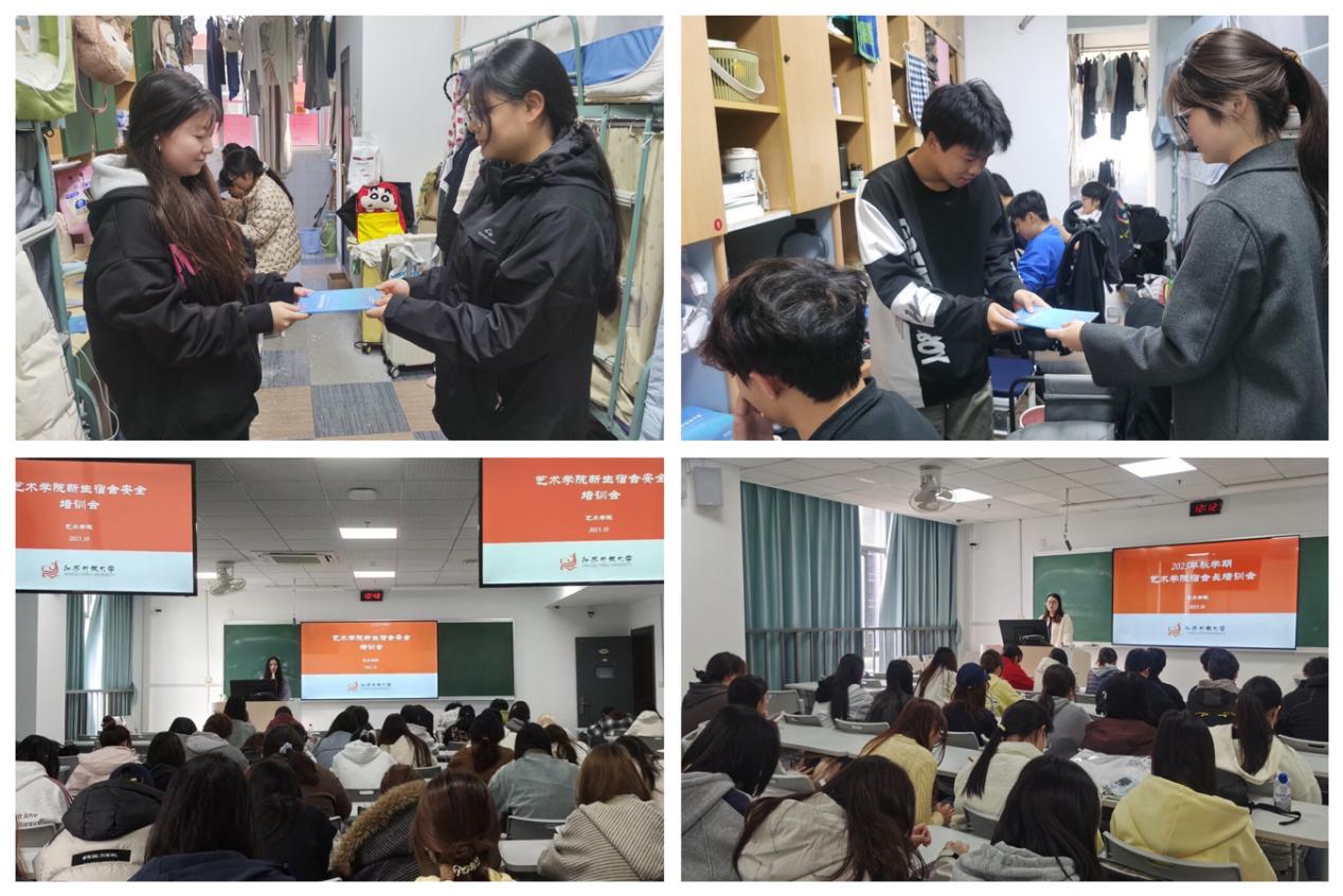 学院充分发挥学生自治力量,组建由学生会成员、学生干部构成的“文明宿舍宣讲队”,分组深入各宿舍发放安全宣传手册,面对面解读文明宿舍创建标准,呼吁同学们从整理个人物品、遵守作息时间等细节入手,积极投身创建工作。此外,学院针对性开展宿舍长专题培训与新生宿舍安全专题培训:前者明确宿舍长在卫生监督、安全提醒、矛盾调解等方面的职责,提升其管理能力与责任意识;后者聚焦新生安全需求,强化安全认知。通过培训确保每间宿舍都有“领头人”,为文明宿舍创建工作落地见效提供有力支撑。