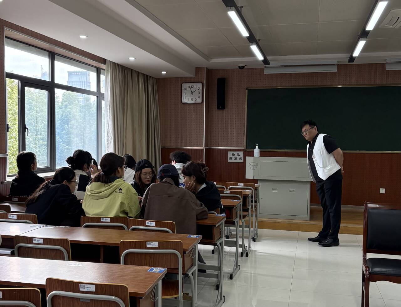 此外,在本次线下实训活动中,还特别邀请了青年昆曲演员沈芷绮进入课堂与学生分享,为课堂注入鲜活的行业视角。作为活跃在昆曲舞台的新生代力量,沈芷绮曾在《牡丹亭》《长生殿》等经典剧目中饰演重要角色,拥有丰富的舞台表演经验。分享中,她结合自身从艺经历,向学生们细致讲解昆曲表演中“唱、念、做、打”的技法要点,现场示范了水袖、兰花指等经典戏曲动作的标准姿态与情感表达技巧。此外,她还分享了戏曲造型在角色理解、情绪代入、舞台应变等方面的经验,通过“理论讲解+现场示范+互动答疑”的形式,让大家直观感受到专业戏曲演员的职业素养与表演精髓,进一步拉近了课堂学习与行业实践的距离。