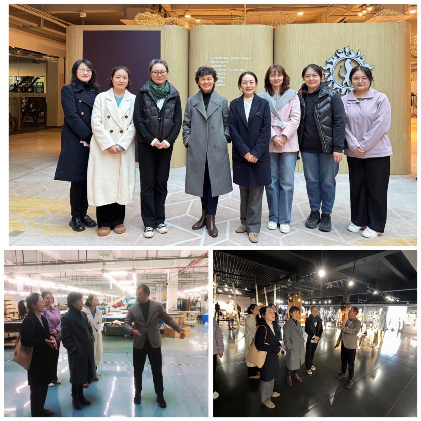 随后,学院一行走进蓝豹股份有限公司。作为集高端男装设计、生产、销售于一体的大型服饰企业,该公司在时尚服饰领域颇具行业影响力。在公司董事闵斌先生的全程陪同下,调研团队实地参观考察企业工艺展示馆与高定工坊,系统梳理企业发展脉络,深入调研核心技术研发历程及产业化应用成效。双方围绕工匠精神与时尚设计融合路径、实习实训基地共建及合作模式创新等开展深入交流,并达成联合培育行业适配型人才的合作共识,为后续深化校企合作、实现资源互补奠定坚实基础。