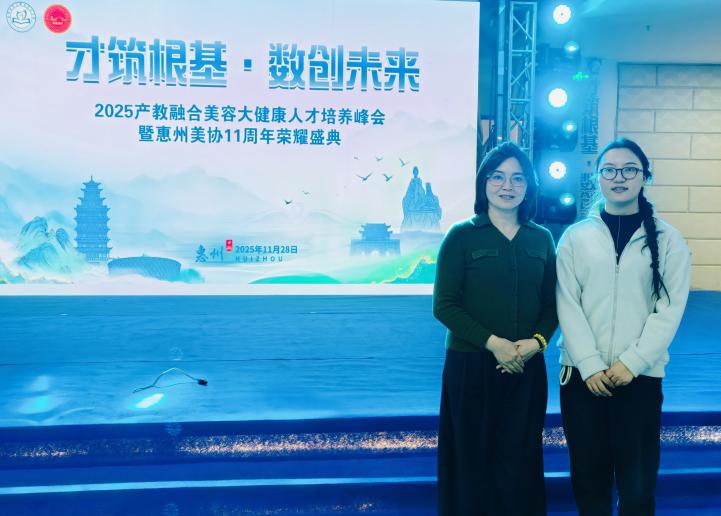 为深化职业教育产教融合、精准对接美容大健康行业人才培养需求,近日,艺术学院副院长夏雪敏和专任教师朱文静应邀赴惠州市参加2025产教融合美容大健康人才培养峰会暨2025年中高贯通美容精英培养研讨会,与来自全国人物形象设计专业和医学美容专业的专家同仁共探育人新路径。参加本次活动的有来自全国各地近50所职业院校领导,汇聚了粤港澳大湾区包括香港、澳门等地美容行业协会的会长及行业领袖。活动以“才筑根基,数创未来”为核心,为期三天,由中国美发美容协会产教融合专业委员会、全国美容行业产教融合共同体主办,惠州市华文职业技术学校承办,为职业教育与行业发展的深度融合注入新动力。
