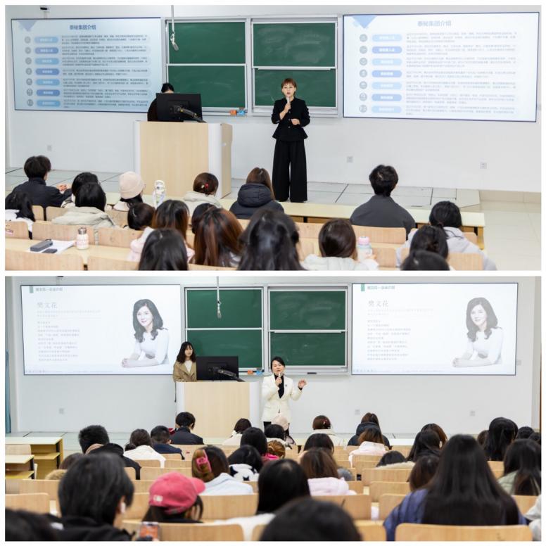 企业宣讲会在教学楼201教室率先启动。南京泰秘企业管理有限公司、樊文花化妆品有限公司等企业代表依次登台,围绕企业文化、岗位需求、晋升通道及行业前景等内容展开详细介绍。宣讲过程中,企业代表结合自身发展经历,分享职场心得与成长路径,为在场毕业生提供了宝贵的行业洞察与择业参考。学生们认真记录、踊跃提问,展现出浓厚的求职热情与清晰的职业规划意识。