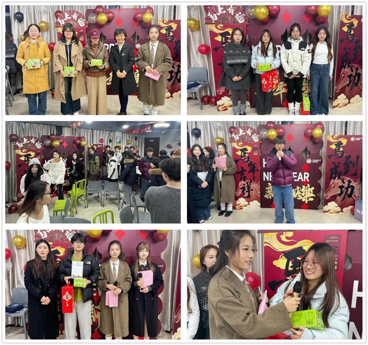 穿插全程的游戏与抽奖环节将活动推向一波又一波的高潮。“抢凳子”“猜歌名”“看图表演”等互动游戏吸引了众多师生踊跃参与,现场妙趣横生,笑声不断。激动人心的三轮抽奖更是凝聚了全场的期待,随着奖项的陆续揭晓,现场氛围热闹非凡,幸运儿们脸上绽放出灿烂的笑容,畅谈对新的一年的满满期待。