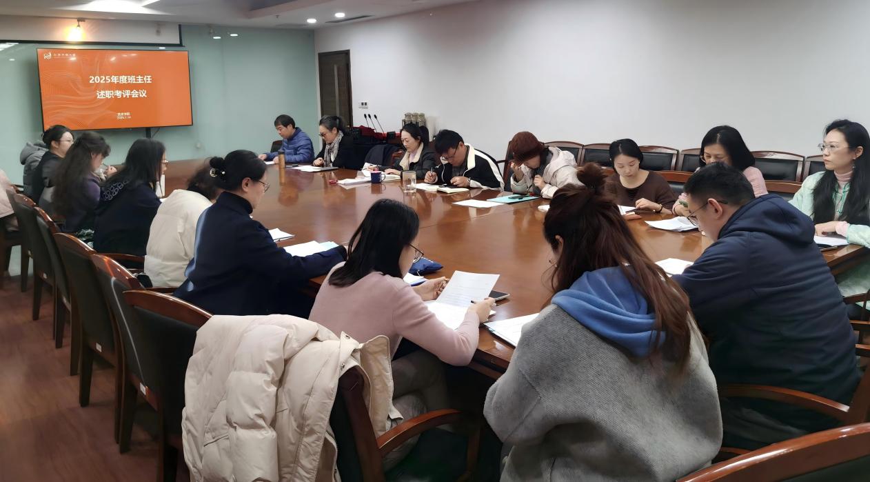 为进一步加强班主任队伍专业化建设,总结交流年度学生工作经验,助推学院人才培养高质量发展,1月14日,艺术学院在定淮门校区二楼第三会议室召开2025年度班主任述职考评会议。会议由党总支副书记张洁主持,学院领导班子成员、全体班主任及辅导员参加。